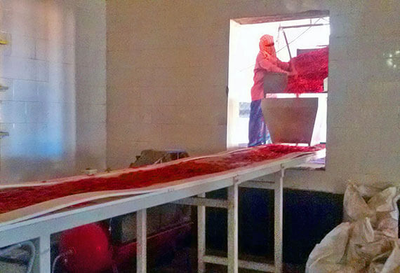 Red Chilli Desteming capacity of 10 MT per day. Red Chilli Stem Cutting Facility of 15 MT per day.